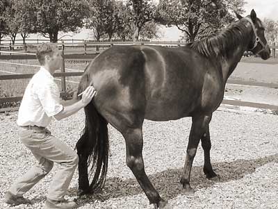 Beidseitige Stimulation der Kruppenmuskulatur bewirkt ein Aufwölben der Ledenwirbelregion, dadurch lassen sich erste diagnostische Erkenntnisse über vorhandene Blockaden gewinnen.